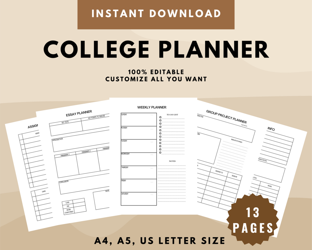 Printable College Student Planner. Editable using Canva