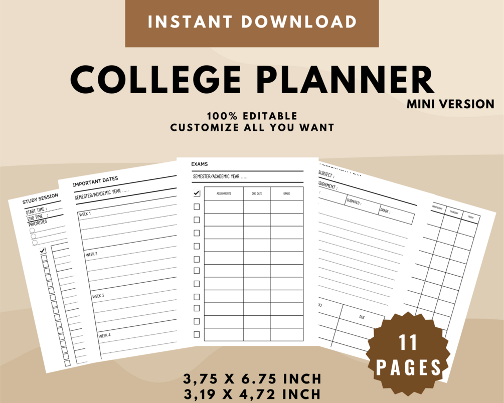 Mini size planner. Printable College Student Planner. Editable using Canva